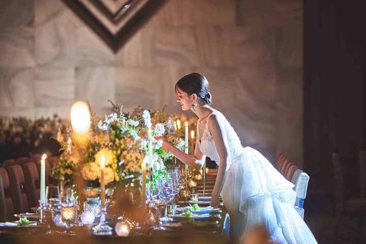 まるで宮殿の晩餐会のような雰囲気が、花嫁を美しく際立たせます。